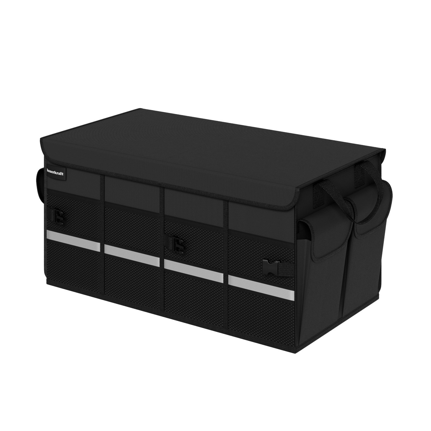 Organizer Bauerkraft to niezastąpiony towarzysz każdej podróży! Bez względu na to, czy przewozisz zakupy, narzędzia, środki czystości, sprzęt sportowy czy zabawki dla dzieci – wszystko ma swoje miejsce. Dzięki przemyślanej konstrukcji możesz zapomnieć o chaotycznym bagażniku i brzęczących butelkach po zakrętach!