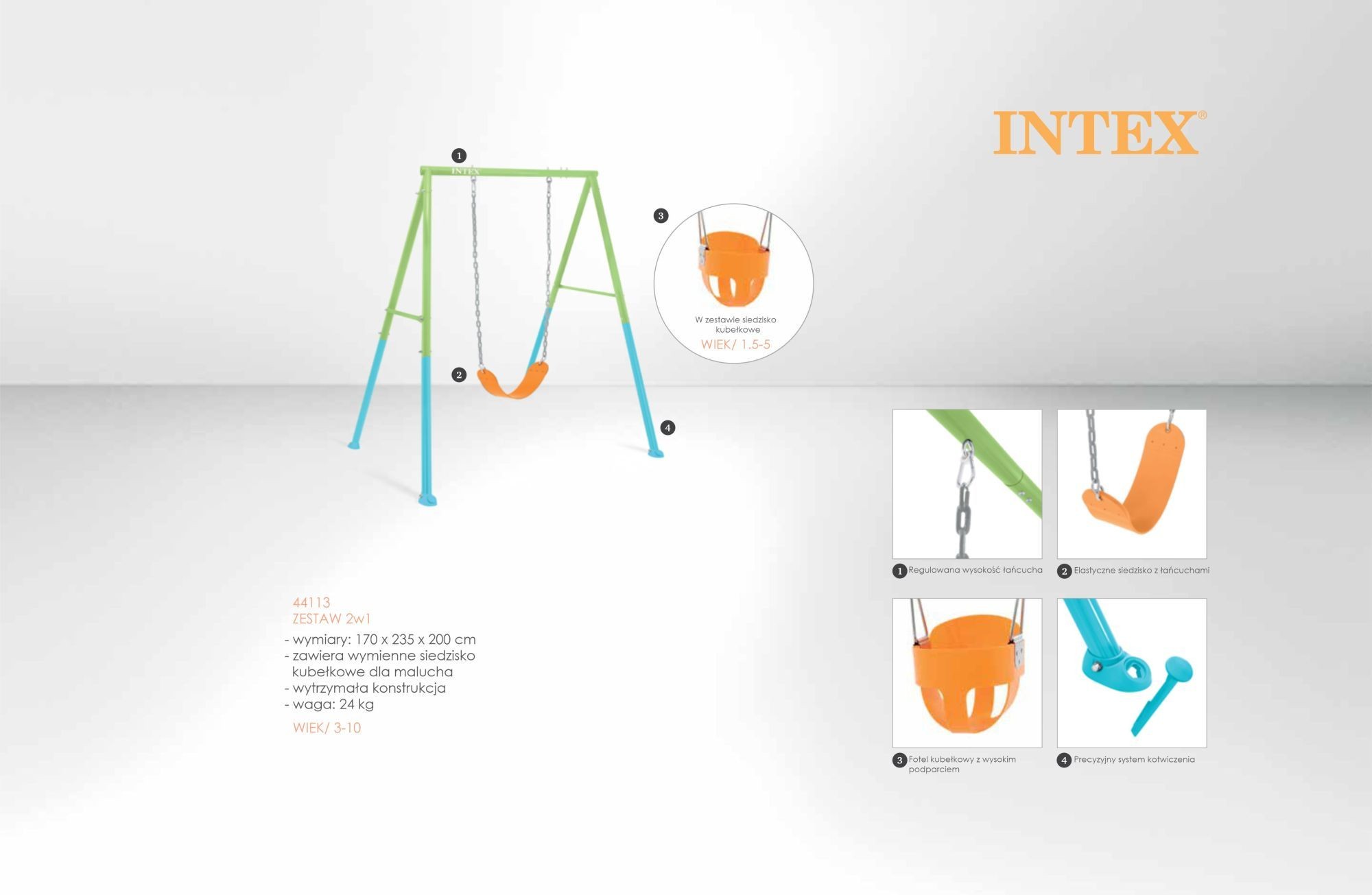 Solidna kolorowa huśtawka ogrodowa 2w1 Intex 44113